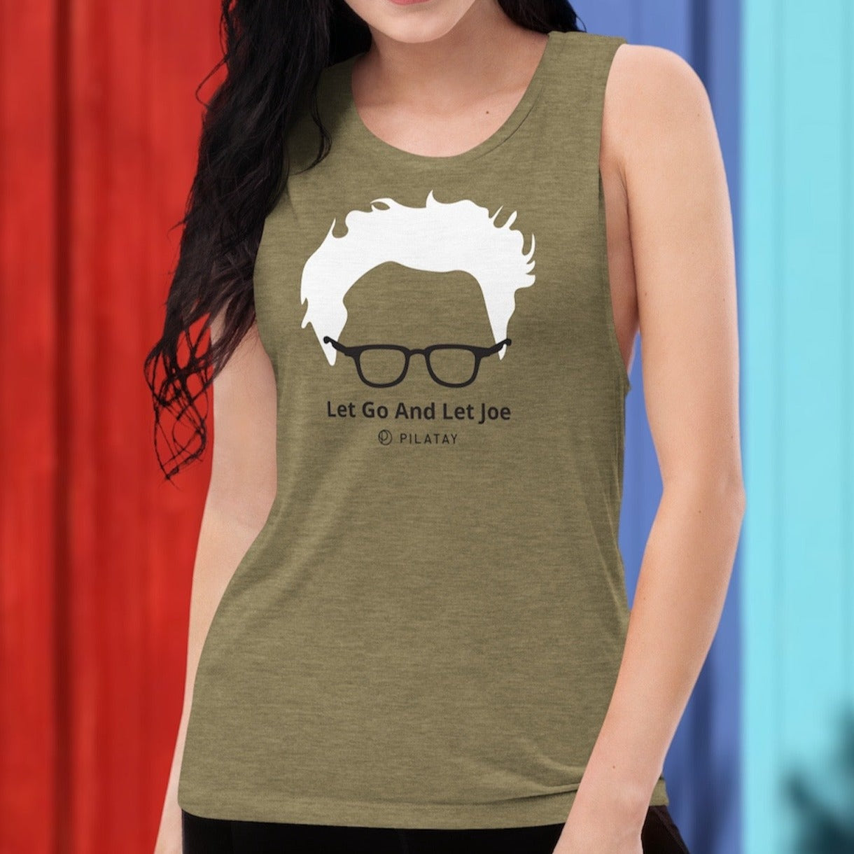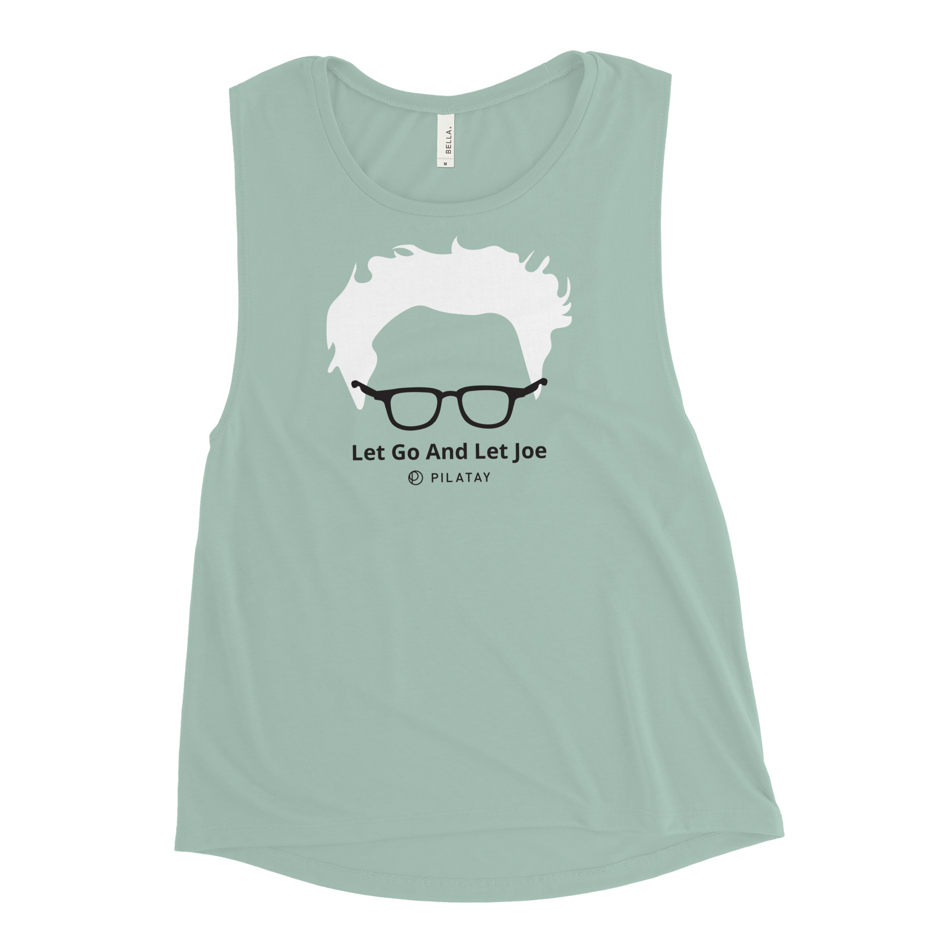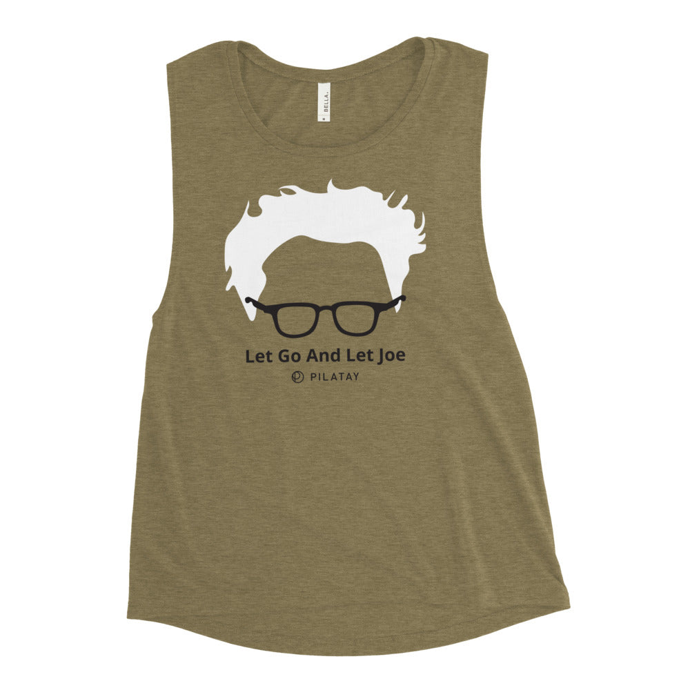 This subtle reference to Pilates Founder Joseph Pilates features his signature white hair and black glasses, with the words, Let Go and Let Joe.
